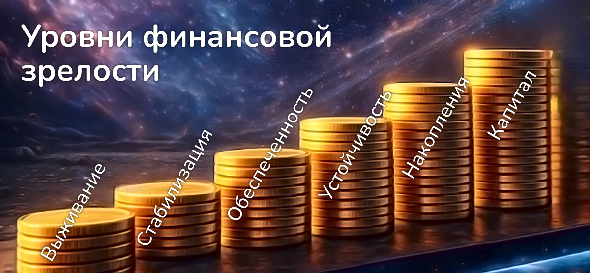 Большинство людей начинают работу с деньгами с шагов, которые пока противоречат их реальному финансовому уровню. Из-за этого путь к богатству становится тернистым и не редко опасным. Реальность такова, что многие действуют инфантильно в вопросах денег, мало кто объясняет про финансовую зрелость и как она формируется. А курсы по финансовой грамотности часто не объясняют всю картину целиком.